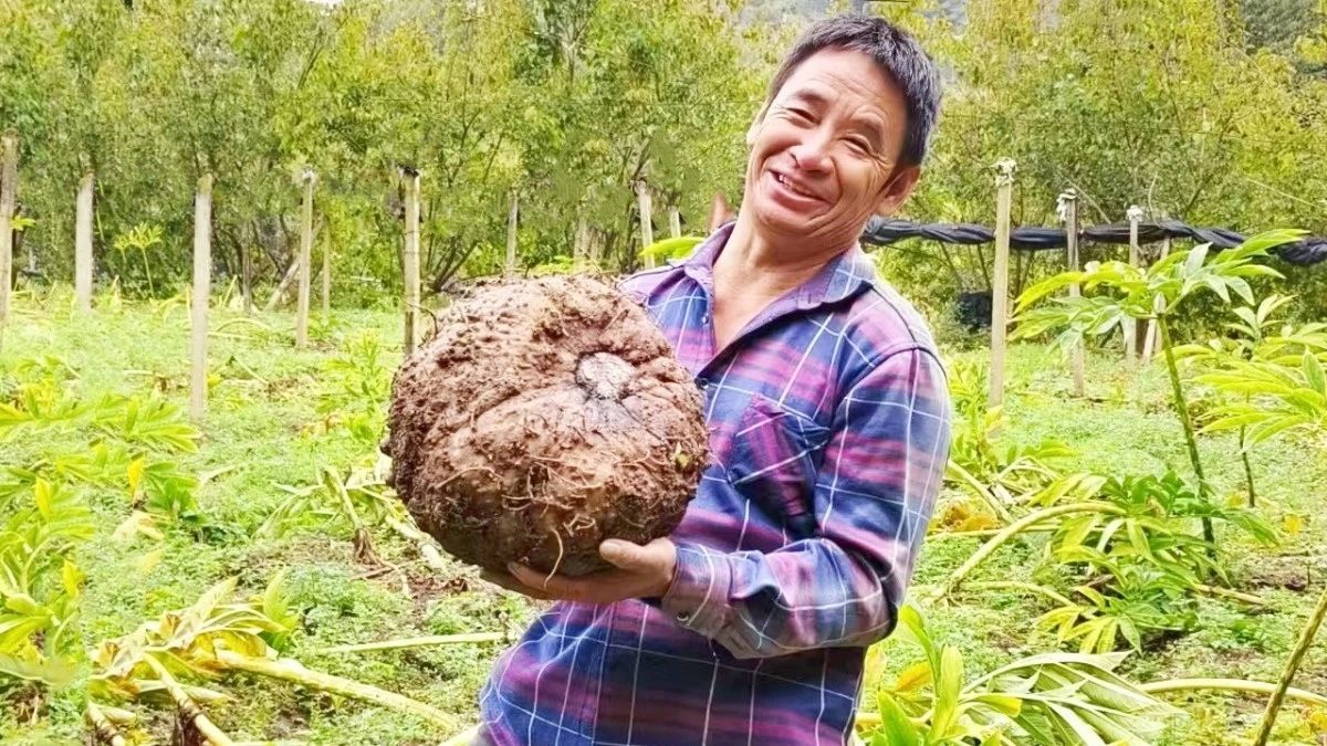 據悉,漁門鎮獅子堡村西瓜+魔芋輪作示范地占地1畝多,種植示范戶梁維成在今年5月采收完地里的西瓜后,于6月種下珠芽金魔芋,經過5個月的生長培育,魔芋迎來了成熟。“我已經連續3年進行西瓜與魔芋輪作,經專家現場測產,今年魔芋畝產達8000余斤,較去年增產34%左右,最大的魔芋單個可達19斤。 ”梁維成興奮地表示,除了畝產提升,魔芋的收購價格也節節攀升,自家收入得到極大提升。“賣了西瓜種魔芋,今年這一塊地估計要增收3萬余元。”