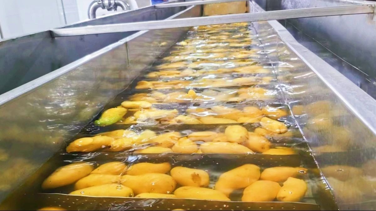 走進攀枝花田野創新農業科技有限公司生產車間,一股甜蜜的芒果香味撲鼻而來,只見工作人員將新鮮的芒果清洗消毒后去皮去核并切塊,有的被速凍成芒果干,有的被榨成芒果汁,再送往市場銷售。