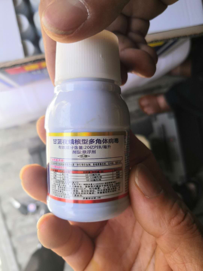 本次統一防控示范,重點在于向廣大群眾展示生物藥劑的防控效果,消除農戶心中化學農藥防效優于生物農藥的誤解,直觀地展示生物農藥的有效性和與環境的友好性。所用的農藥甘藍夜蛾核型多角體病毒和金龜子綠僵菌均是以菌治蟲的生物藥劑,昆蟲幼蟲感染病菌后逐步喪失活力,最后死亡。使用無人機進行統一防控,讓群眾知曉新的施藥方式和節省藥液的低容量噴藥模式。本次防控共出動工作人員36人次、無人機200架次,防控面積達2019畝。使用甘藍夜蛾核型多角體病毒50公斤、金龜子綠僵菌40公斤。