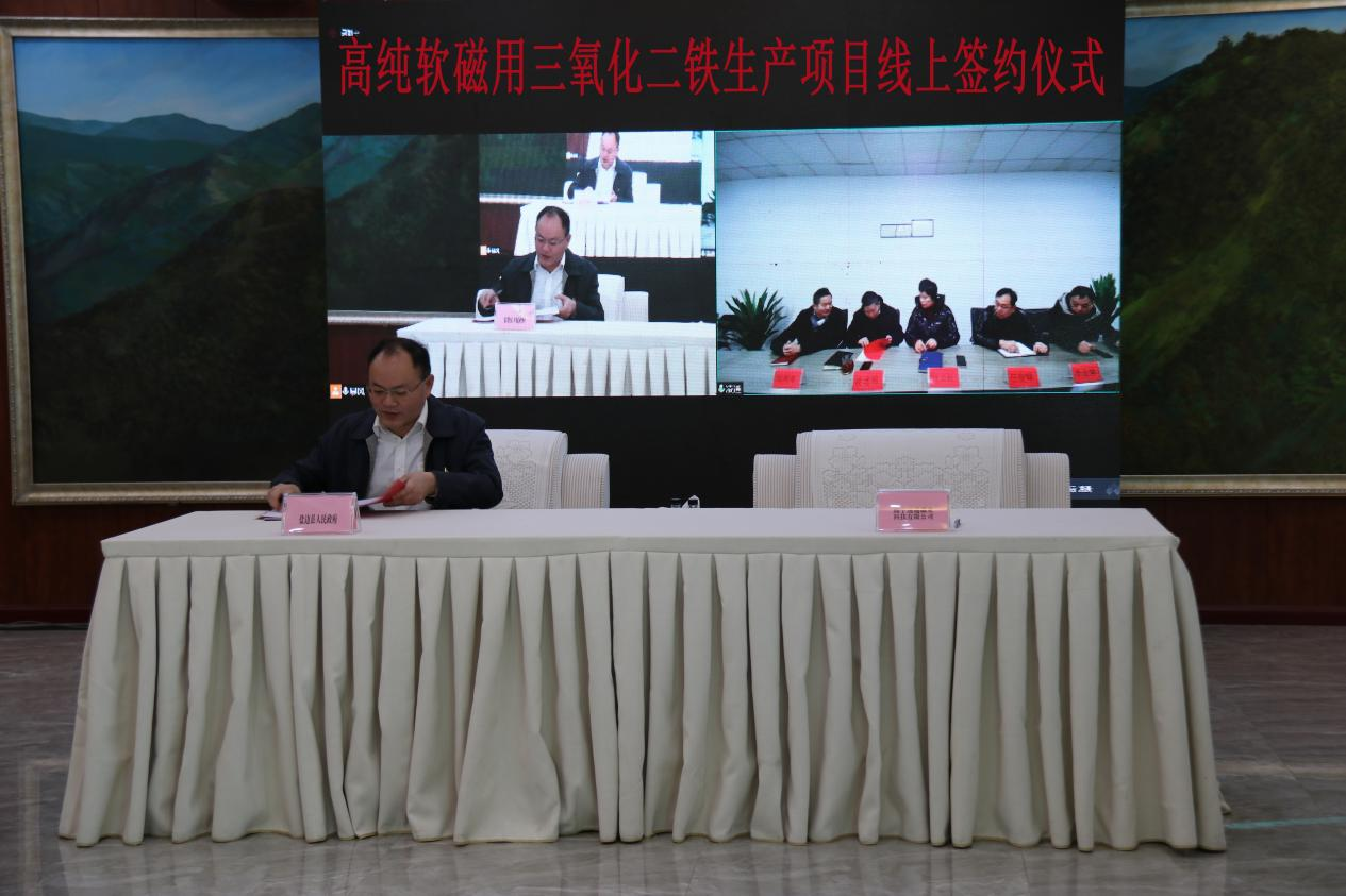 受疫情影響,高純軟磁用三氧化二鐵生產項目采取視頻連線簽約形式,該項目總投資15000萬元,一期從固廢硫酸亞鐵中提煉三氧化二鐵,二期生產電子元器件,發展軟磁新材料,項目建成投產后能合理開發利用固廢資源,有較好的社會效益和生態效益。新建年加工240萬噸鐵礦石和倉儲物流項目采取現場簽約的形式,該項目總投資12000萬元,一期發展鐵精粉配礦業務,二期建設進口礦原礦破碎生產線,項目建成投產后年產值預計10000萬元以上,年繳稅收預計1300萬元以上。