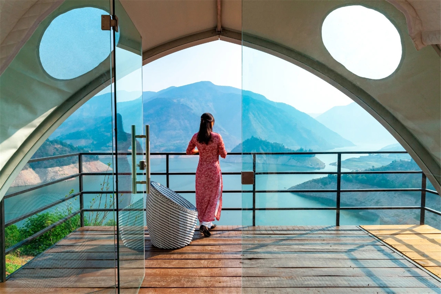 漁門小聚共13個房間,14個床,建筑面積800㎡。漁門小聚有“星空”帳篷、“毛毛蟲”帳篷,房內浴室、電視、空調、wifi等設施齊全,十分適合家人旅行居住,是集娛樂、度假、康養等功能于一體的帳篷主題客棧。特色帳篷與二灘庫區相得益彰,山水鹽邊的魅力彰顯無遺。您可以坐在亭子里觀賞二灘湖的廣袤,享受愜意時光。