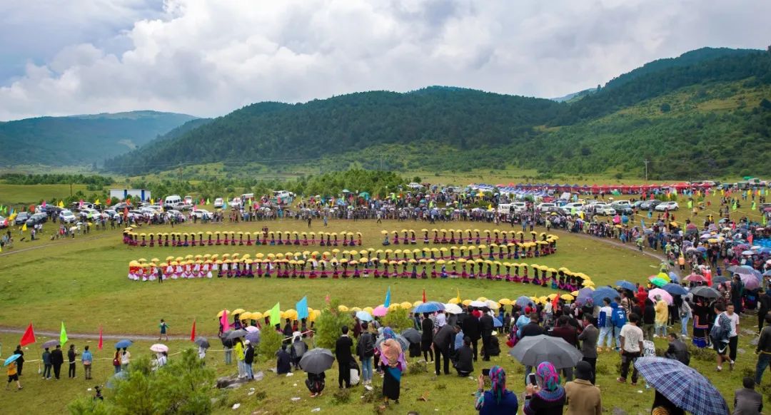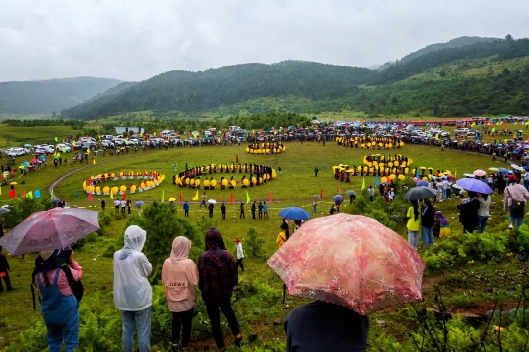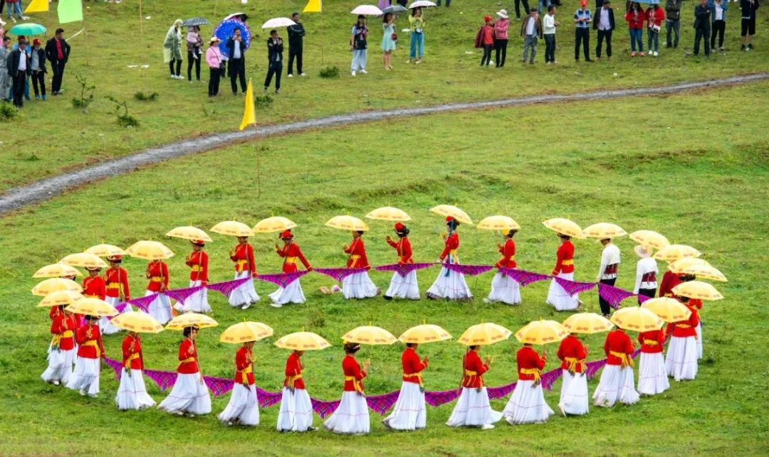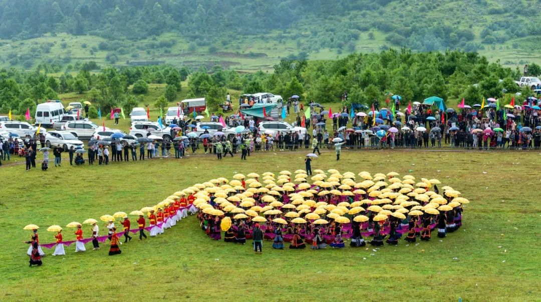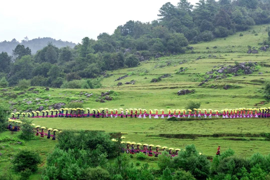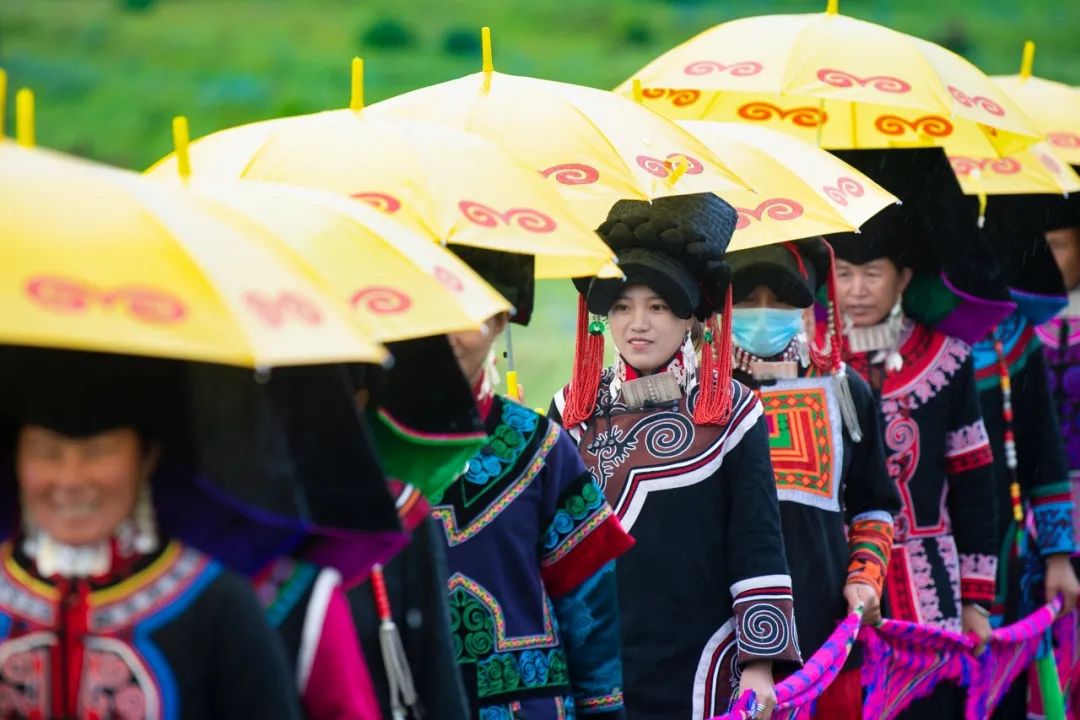 360名身著盛裝的彝家女子撐著明黃的長傘