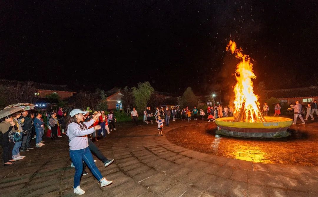 游客們和彝族舞蹈高手一起跳起鍋莊