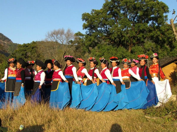 次日早飯后,舉行“瓦卡”(復原),新郎新娘端茶盤為雙方親戚敬煙、酒、茶,親人接過后分別在茶盤中放一些錢幣。男家在院壩中跳三圈舞即進屋,女家跳三圈舞后吹著葫蘆笙回家。婚禮結束。