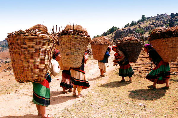 彝族背簍。因為當地的特殊地形,背簍在日常生活中發揮重大作用。(楊才秀 攝)