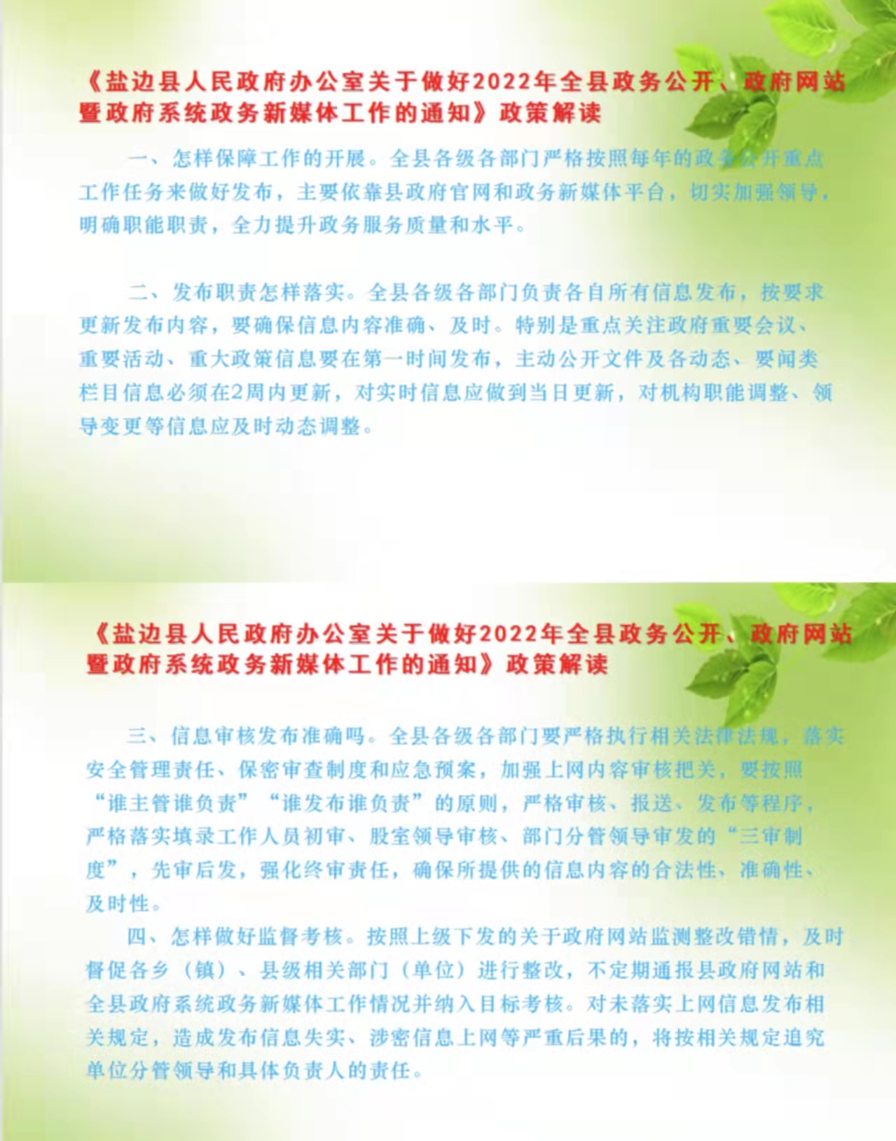 鹽邊縣人民政府辦公室 關于做好2022年全縣政務公開、政府網站暨政府系統政務新媒體工作的通知