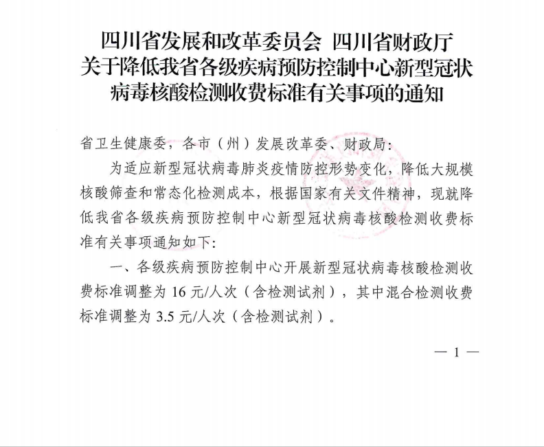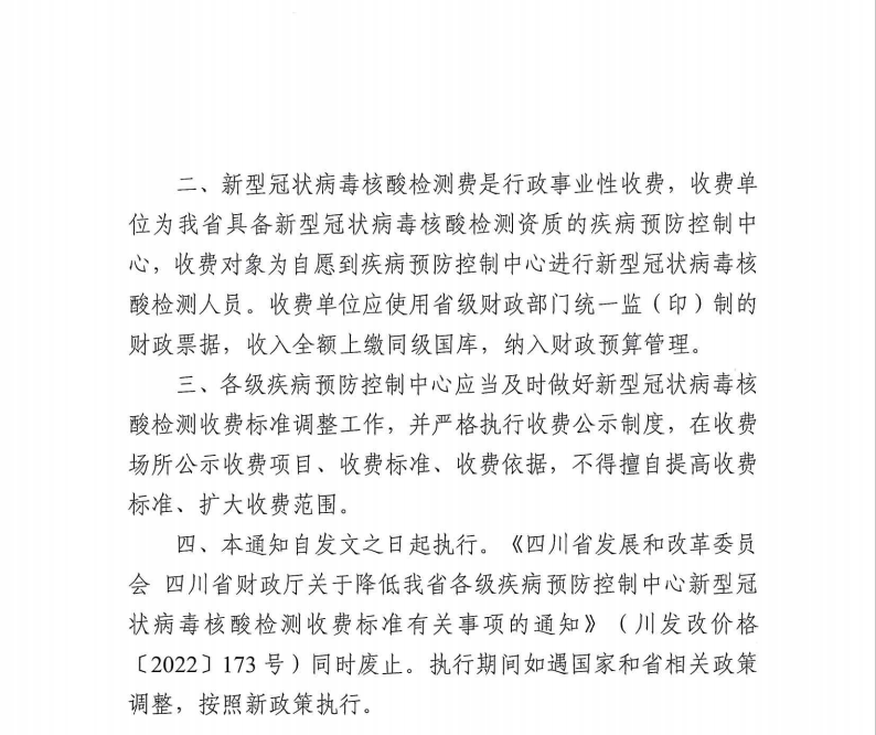 現將《四川省發展和改革委員會 四川省財政廳關于降低我省各級疾病預防控制中心新型冠狀病毒核酸檢測收費標準有關事項的通知》(川發改價格〔2022〕274號)轉發你們,請按要求遵照執行。