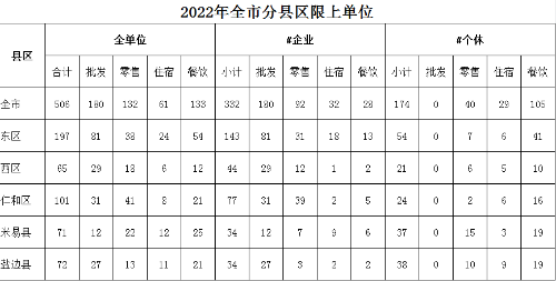 一是在庫企業偏少個體戶偏多。從在庫企業(個體)個數看,我縣在庫企業(個體)共計72家(2022年全市分縣區限上單位如下表所示),其中,在庫企業34家,企業中涉及零售額的企業僅9戶,1-3月共計實現零售額1231.6萬元;在庫個體(產業活動單位)38戶,1-3月共計實現零售額5054.6萬元,在庫企業實現的零售額占限額以上零售額的19.6%,占比較小,在庫個體戶及產業活動單位實現的零售額占80.4%,但在庫個體戶中有26戶單位無收銀系統,因省統計局要求各市州要提前布局逐步清理無收銀系統的限上個體戶,若今年年底這26戶無收銀系統的個體戶全部被清理出庫,全縣的限額以上零售額總量將會更小,限上占比將更低。二是在庫企業中批發業偏多,涉及零售額的零售和餐飲業企業少。歷年來,我縣入庫企業主要為批發業企業,但因在庫的大多數企業均為礦產品批發企業,對社消零無拉動作用,而對社消零指標有貢獻的零售業、住宿業、餐飲業企業我縣共計僅有7戶,在各縣區中個數最少,導致我縣限額以上零售額占比低。