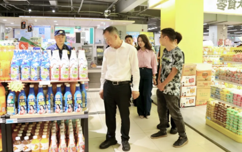 督導中,付建平實地察看商超各類生活必需品儲備、供應、銷售等情況,詳細了解各單位各場所生產經營狀況及食品、消防等安全生產工作落實。