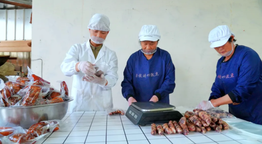 “現(xiàn)在自媒體達人都在利用短視頻宣傳自己的家鄉(xiāng),要不我們也嘗試一下?”2019年,蔣彥兵敏銳地捕捉到短視頻平臺的傳播潛力,決心打造“山貨出山”的自媒體矩陣,試著通過視頻與網(wǎng)絡(luò)向外宣傳家鄉(xiāng)、推介農(nóng)特產(chǎn)品,讓更多人認識了解三源河村。蔣彥兵注冊“奔放的四激豆”自媒體賬號,以“傳統(tǒng)制作工藝+農(nóng)村故事+農(nóng)事體驗”為主,拍攝農(nóng)特產(chǎn)品從生產(chǎn)到制作的全過程。通過拍攝視頻、直播帶貨等方式,講述家鄉(xiāng)故事,傳遞家鄉(xiāng)美味,目前,蔣彥兵自媒體抖音賬號已擁有3.8萬粉絲,每年銷售額達400余萬元。