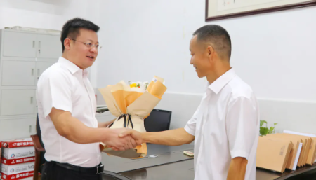 在紅格鎮中心學校益民教學點,王興全與近期獲得2024年全國優秀教師榮譽的楊正剛親切交流,送上鮮花和節日的美好祝福,感謝他的辛勤付出,勉勵他繼續堅守教育初心,當好學生成長成才領路人,培養更多優秀人才,為鹽邊教育事業發展作出新貢獻。
