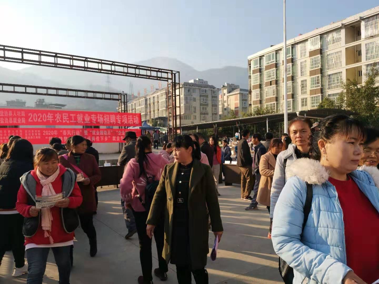 1月16日,由鹽邊縣人力資源和社會保障局、縣就業創業促進中心主辦的2020年“就業援助月”暨返鄉農民工“春風行動”招聘會在鹽邊縣漁門鎮廣場舉行。