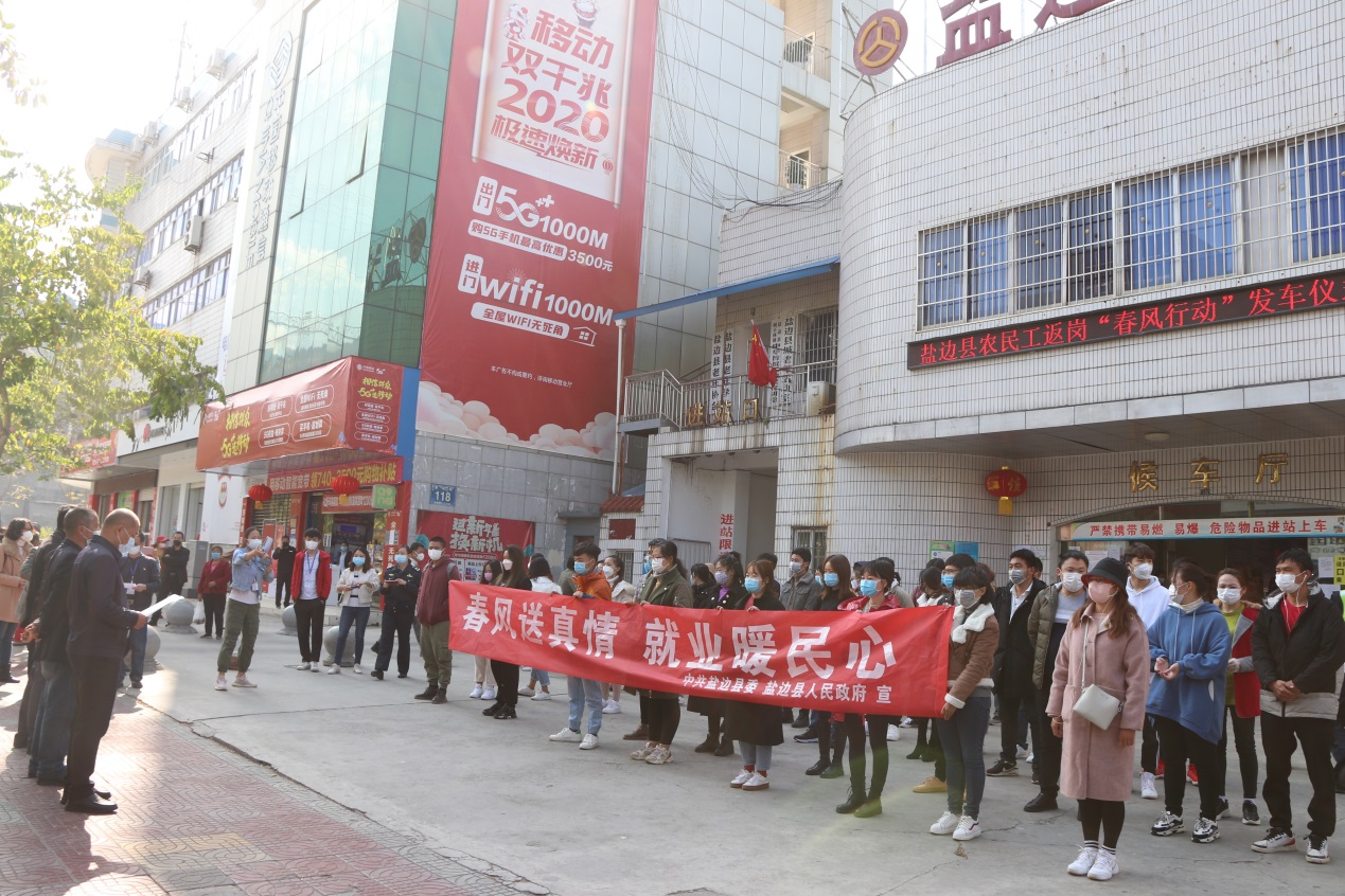 2020年2月24日上午11時許,在鹽邊縣汽車客運站,2輛“春風行動”免費專車緩緩啟動,把我縣48名集中返崗農民工送往成都。
