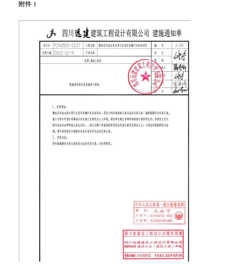 附件:1.四川遠建建筑工程設計有限公司變更通知單