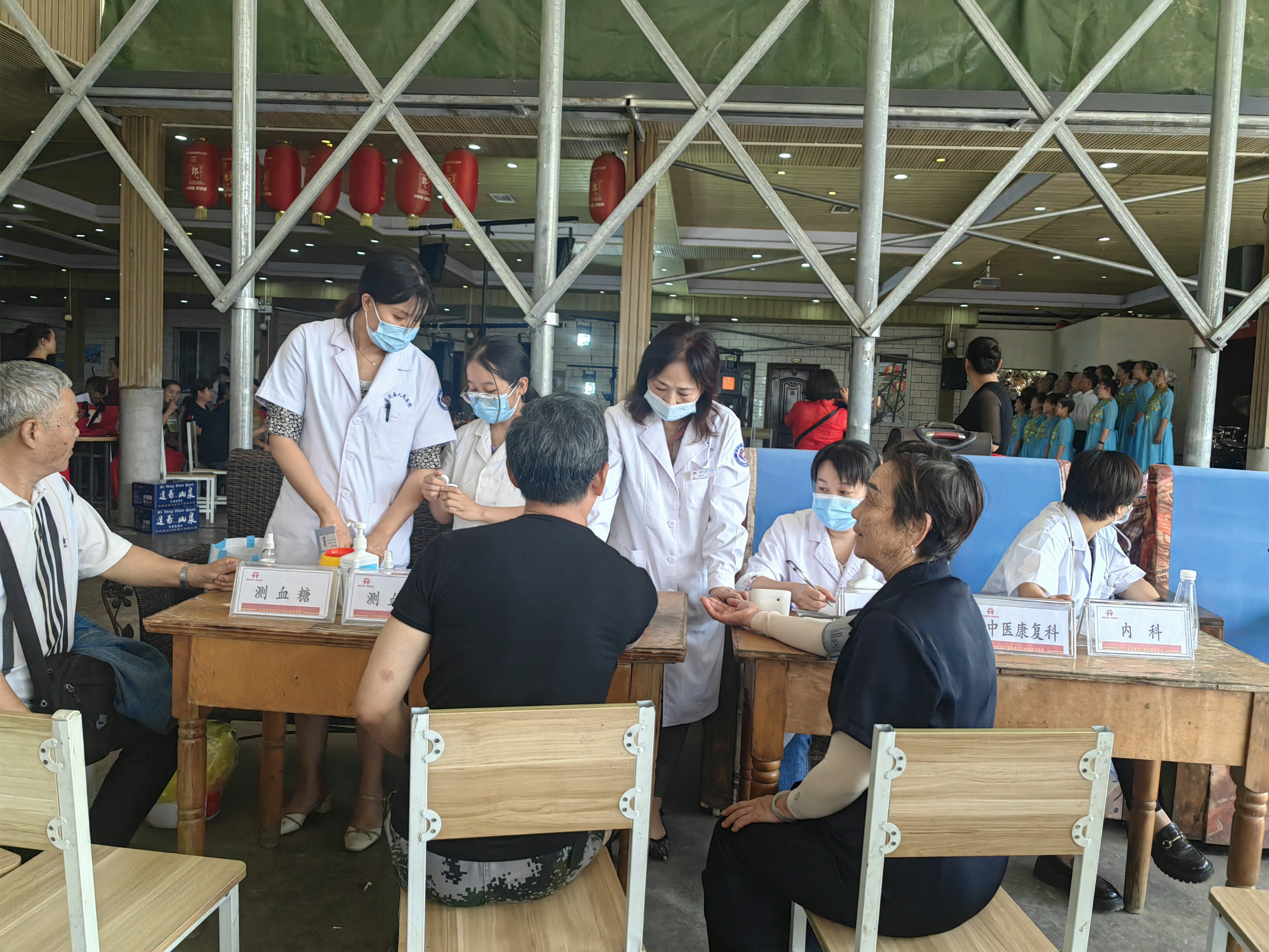 在節目表演的同時,縣衛生院的醫療服務志愿隊也為老人們提供測血糖、量血壓等免費義診服務,讓前來觀看節目的老人們體會到更多的關愛和溫暖。