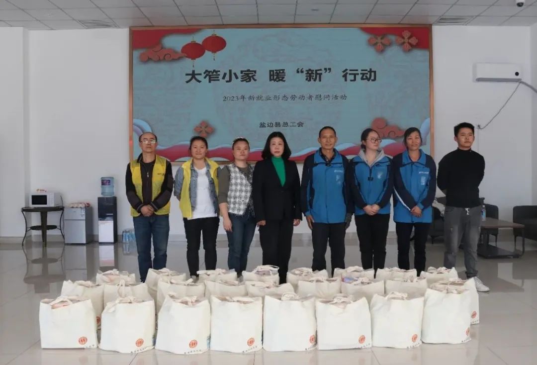 為深入貫徹落實黨的二十大精神和中國工會十八大精神,進一步增強新就業(yè)形態(tài)勞動者的獲得感、幸福感和安全感。近日,縣總工會開展2023年“大笮小家暖‘新’行動”活動,為50名新就業(yè)形態(tài)勞動者送去慰問品及縣委、縣政府的關(guān)懷。
