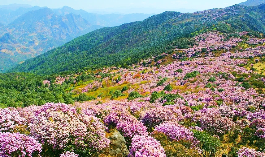 紅寶龍頭山是野生杜鵑花的“王國”,每年花期,漫山遍野的花朵肆意綻放 ,美如夢幻之境。
