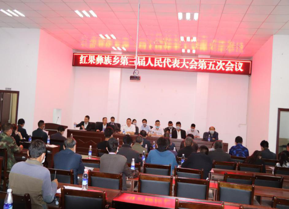 2020年5月26日,紅果彝族鄉召開了第三屆人民代表大會第五次會議,會議由鄉人大主席高德朝主持,會議應到人大代表46人,實到41人,符合法定人數,可以召開會議。