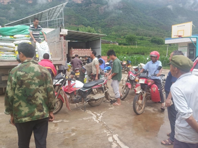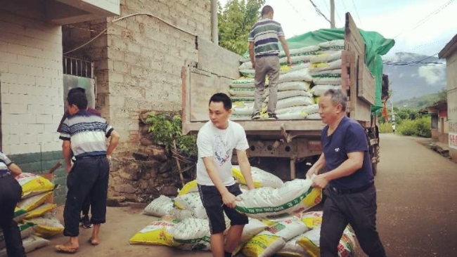 圖為周書記為精準(zhǔn)扶貧戶分發(fā)復(fù)混肥料。