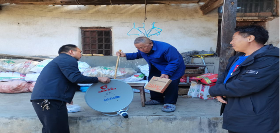 2021年11月新九鎮工作人員聯系戶戶通安裝負責人代政波到新壩村新村組李如恒家中免費為他安裝戶戶通電視接收器。
