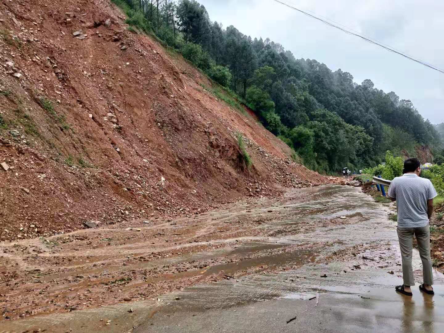 受連夜降雨影響,9月5日10時許,漁門鎮鹽擇路三級勸導點報告:鹽擇路“103+800”處山體垮塌,阻斷鹽擇路車輛、人員通行,漁門交管辦值班室接到報告后,立即通知犀牛村交通勸導員趕赴斷點協助疏導交通,隨即上報上級交通部門請求工程機械搶通道路、請求公安機關現場指揮交通。