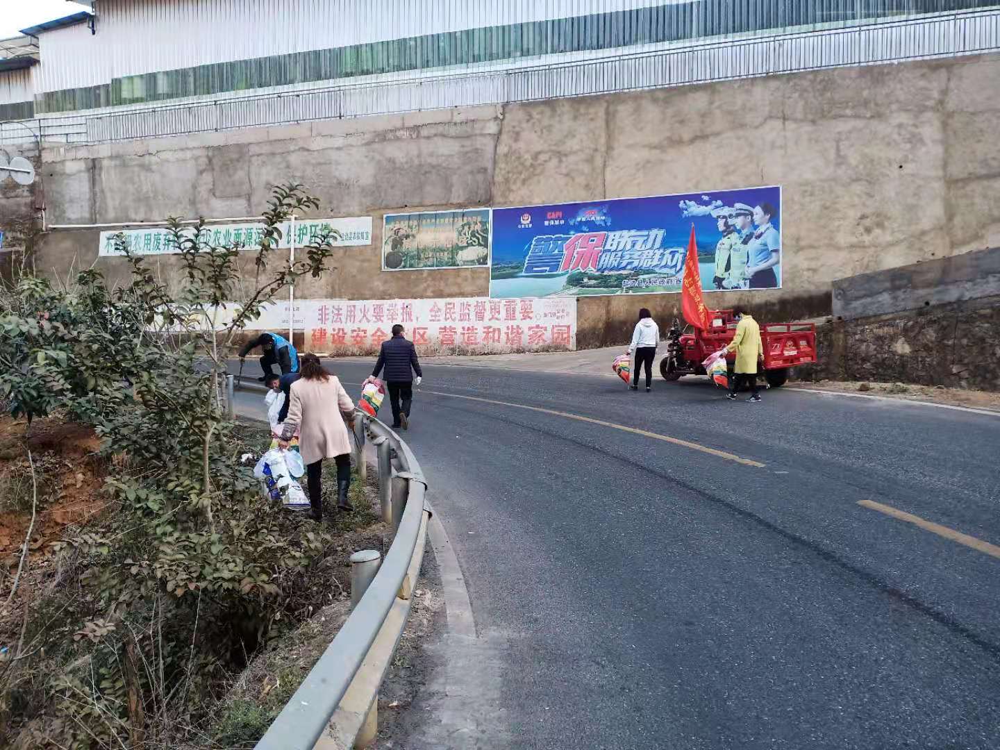 一個支部就是一個堡壘,一名黨員就是一面旗幟。在鎮黨委副書記向舟同志的帶領下,機關支部15名黨員和三岔口、荒田等8個村的黨員防疫工作小分隊共同完成了S216省道沿線環境衛生整治、消毒液噴灑,發放宣傳資料,為沿線群眾測量體溫,勸解無防護措施的群眾佩戴口罩。