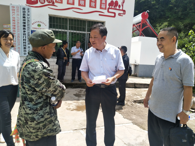 為進一步貫徹落實中央和省、市委關(guān)于脫貧攻堅會議精神,深入了解巖門村脫貧工作成效,9月10日,市政府副秘書長廖成波、攀枝花市報社總編輯彭宗云一行前往箐河傈僳族鄉(xiāng)巖門村開展脫貧攻堅幫扶工作。![]()