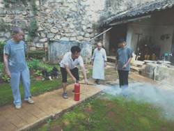 為確保興鹽寺的汛期、用電、用火和人員財產(chǎn)安全, 7月22日永興鎮(zhèn)政府組織人員對轄區(qū)內(nèi)興鹽寺進行安全檢查。鎮(zhèn)黨委副書記、政法委員、統(tǒng)戰(zhàn)委員董潮桂同志,鎮(zhèn)經(jīng)濟發(fā)展辦負責人張光敏、張椿彬等同志首先對近期重要的防汛減災(zāi)、護林防火和安全用電等方面進行檢查。在檢查過程中發(fā)現(xiàn)寺廟食堂堡坎下方被雨水沖刷后,堡坎有部分空洞,為保障寺內(nèi)人員和財產(chǎn)安全,要求寺管會立即組織人員將沖毀部分進行漿砌,把堡坎補齊。并對滅火器是否過期進行檢查,對使用方法進行現(xiàn)場演練。其次對寺廟內(nèi)負責人提出相關(guān)檢查意見,并填寫安全檢查單,為構(gòu)建安全、和諧、文明的寺廟環(huán)境奠定基礎(chǔ)。