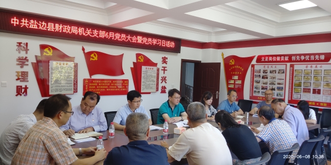 為深入學習領會全國兩會精神,切實做好我縣“六穩”“六保”工作,牢牢“兜住民生底線”。6月8日,鹽邊縣財政局機關黨支部結合“守紀律、提效能、強執行、做表率”活動,召開黨員大會開展黨員學習活動。大會由機關支部書記朱躍叢主持,全體共產黨員參加,預備黨員、入黨積極分子列席會議,局黨組書記、局長彭道華出席會議并講話。