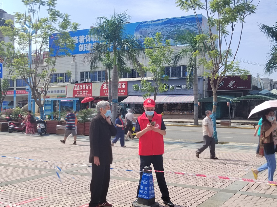 機關黨總支書記陳陽在城南社區移民廣場參加志愿服務,協助社區居民查驗健康碼、行程碼