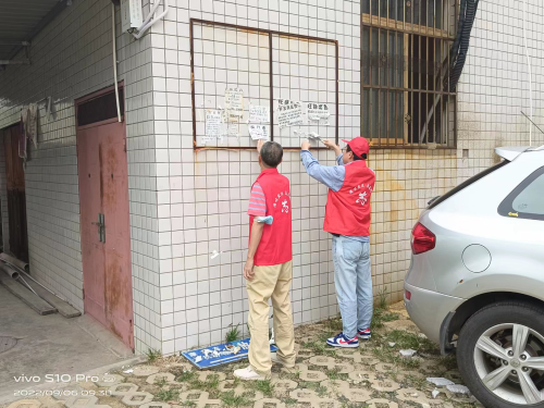 志愿小分隊對月潭小區包保樓棟及周邊進行清掃、清理小廣告