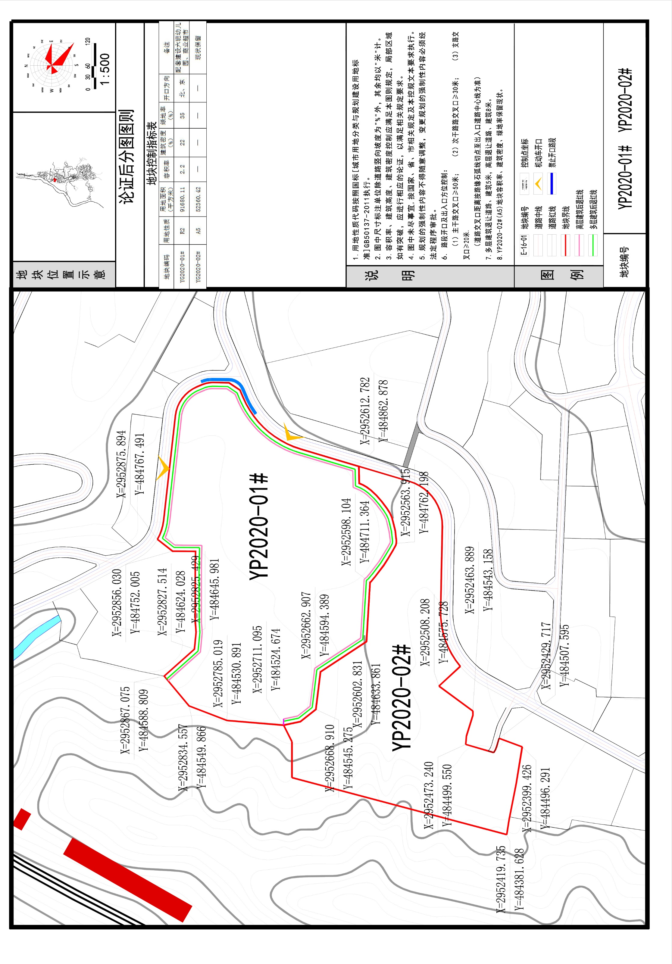 YP2020-01#地塊控制指標(biāo):用地面積為91680.11m2,容積率為2.2,建筑密度為22%,綠地率為35%。