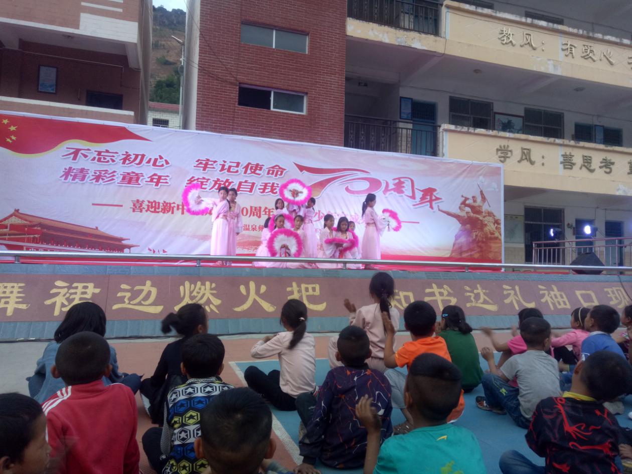 為推進未成年人思想道德建設工作,豐富校園文化生活,提升學校辦學水平,充分展示鄉(xiāng)村學校少年宮孩子們的活動成果,溫泉小學于2019年5月22日下午18::00,在校園隆重舉行了以“不忘初心、牢記使命、精彩童年、綻放自我”為主題——喜迎新中國成立70周年暨鄉(xiāng)村少年宮成果展演。