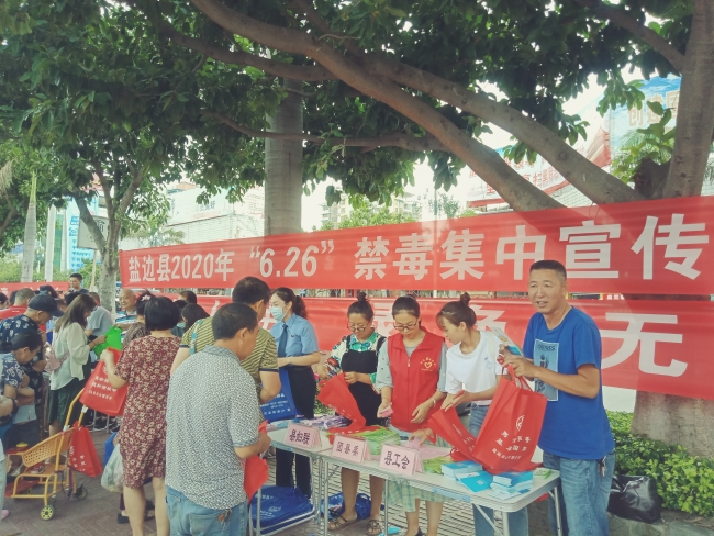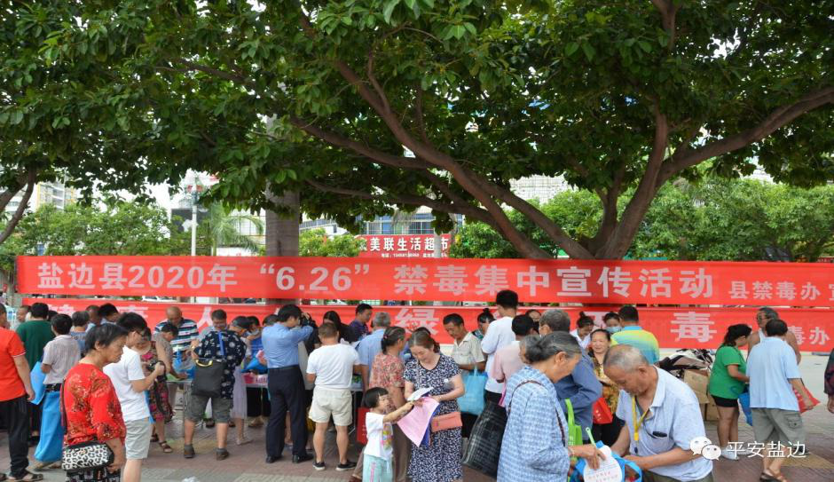 1.“6·26”國際禁毒日即將來臨,6月24日上午,在鹽邊縣移民廣場開展以“健康人生、綠色無毒”為主題的禁毒集中宣傳活動。活動現場采取集中宣傳和流動宣傳相結合的方式,通過懸掛橫幅、發放禁毒、掃黑除惡及國家安全法等宣傳材料。