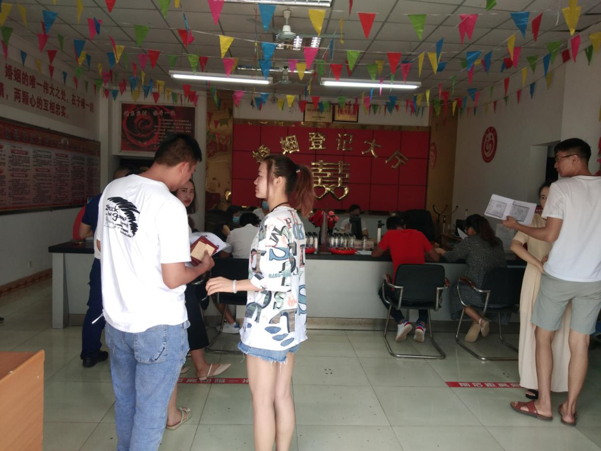 增加人員保障,提高辦事效率。從局機(jī)關(guān)抽調(diào)4名工作人員,協(xié)助對婚姻當(dāng)事人所提交的資料進(jìn)行審查及秩序維護(hù)和疫情防控等服務(wù)工作,有效避免前來辦理結(jié)婚登記的當(dāng)事人扎推聚集。婚姻登記處工作人員提前到崗,取消午休,延長登記時間,減少群眾等待時間,提高工作效率。