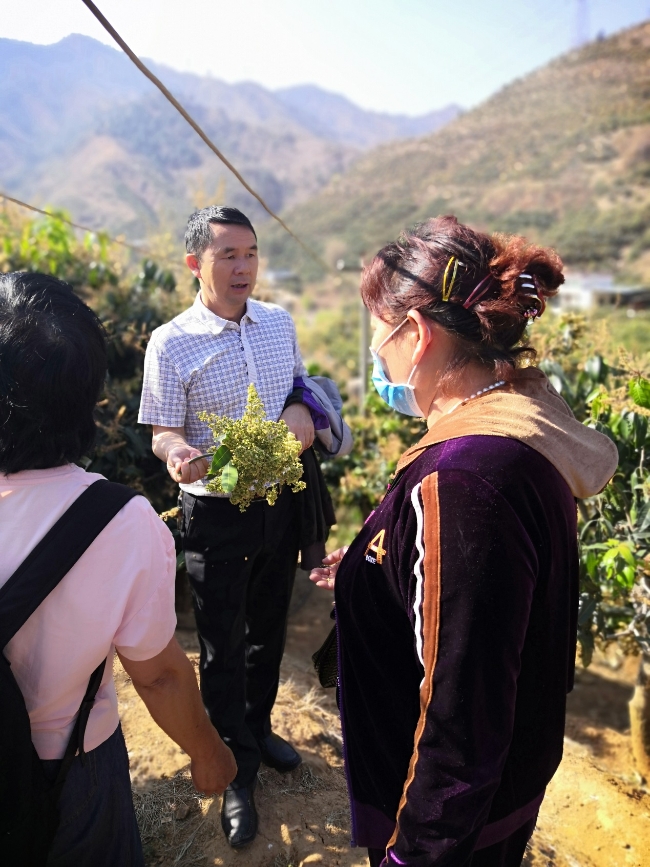 2020年3月26日,縣農(nóng)業(yè)農(nóng)村局植物檢疫站和經(jīng)作站技術(shù)人員受桐子林鎮(zhèn)農(nóng)業(yè)服務(wù)中心工作人員邀請(qǐng)到金河村雙槽門(mén)社查看芒果生產(chǎn)情況。