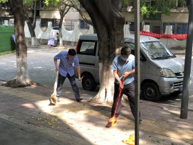 活動中,干部職工們積極行動,分工協(xié)作,拿起笤帚、拖布等工具,不怕臟、不怕累,首先對“縣郵局-經(jīng)金谷酒家-機(jī)具廠路口”“機(jī)具廠路口-森林武警”進(jìn)行全面徹底的清掃,主動與道路施工隊伍溝通,請其做好降塵和垃圾清運(yùn)工作,盡量可能維護(hù)好周邊環(huán)境衛(wèi)生,勸導(dǎo)群眾愛護(hù)好街道衛(wèi)生,保持良好的公共環(huán)境衛(wèi)生。然后集中對辦公室、實(shí)驗室、廁所、樓道等辦公場所進(jìn)行打掃,全面清理衛(wèi)生死角,保障辦公場所干凈衛(wèi)生。