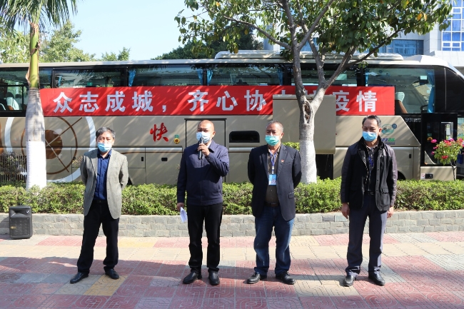 車輛出行前,對(duì)車輛進(jìn)行通風(fēng)消毒處理并配備醫(yī)務(wù)工具箱,安排專人負(fù)責(zé)沿途的體溫監(jiān)測(cè)和疫情防范;嚴(yán)格要求乘車人員全程佩戴口罩,做好個(gè)人防護(hù);車輛客座率為平時(shí)標(biāo)準(zhǔn)座位的50%進(jìn)行安排,最大程度降低交叉感染風(fēng)險(xiǎn);在車上還為乘客提供了方便食品、口罩、水果等。