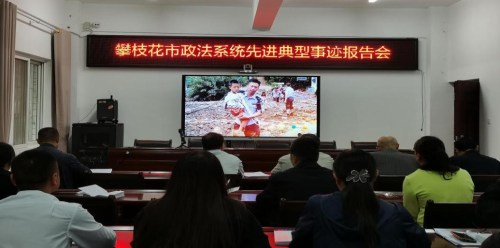 3月24日上午,攀枝花市政法干警先進典型事跡報告會隆重舉行,鹽邊縣司法局機關(guān)36名干警在縣司法局一樓會議室分會場參會,司法所11名干警在當(dāng)?shù)毓才沙鏊鶇雎爩W(xué)習(xí)全市先進英模典型事跡。