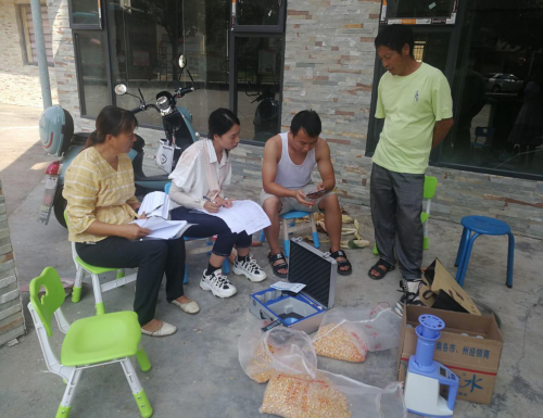 首先,調查組一行人來到第一抽中自然調查地塊,縣統計局分管負責同志現場演示了糧食測產工具的安裝和使用方法;工作人員就糧食作物“實割實測”工作進行了業務講解。接著,調查組人員和輔助調查員逐一實踐樣本放置、收割、脫粒、去雜和水分測量、樣本稱重、記錄等全操作流程,做到采集數據流程規范。最后,對調查數據的計算、表格的填報進行了現場培訓,做到數據審核不漏、數據推算不錯,確保源頭數據準確無誤。