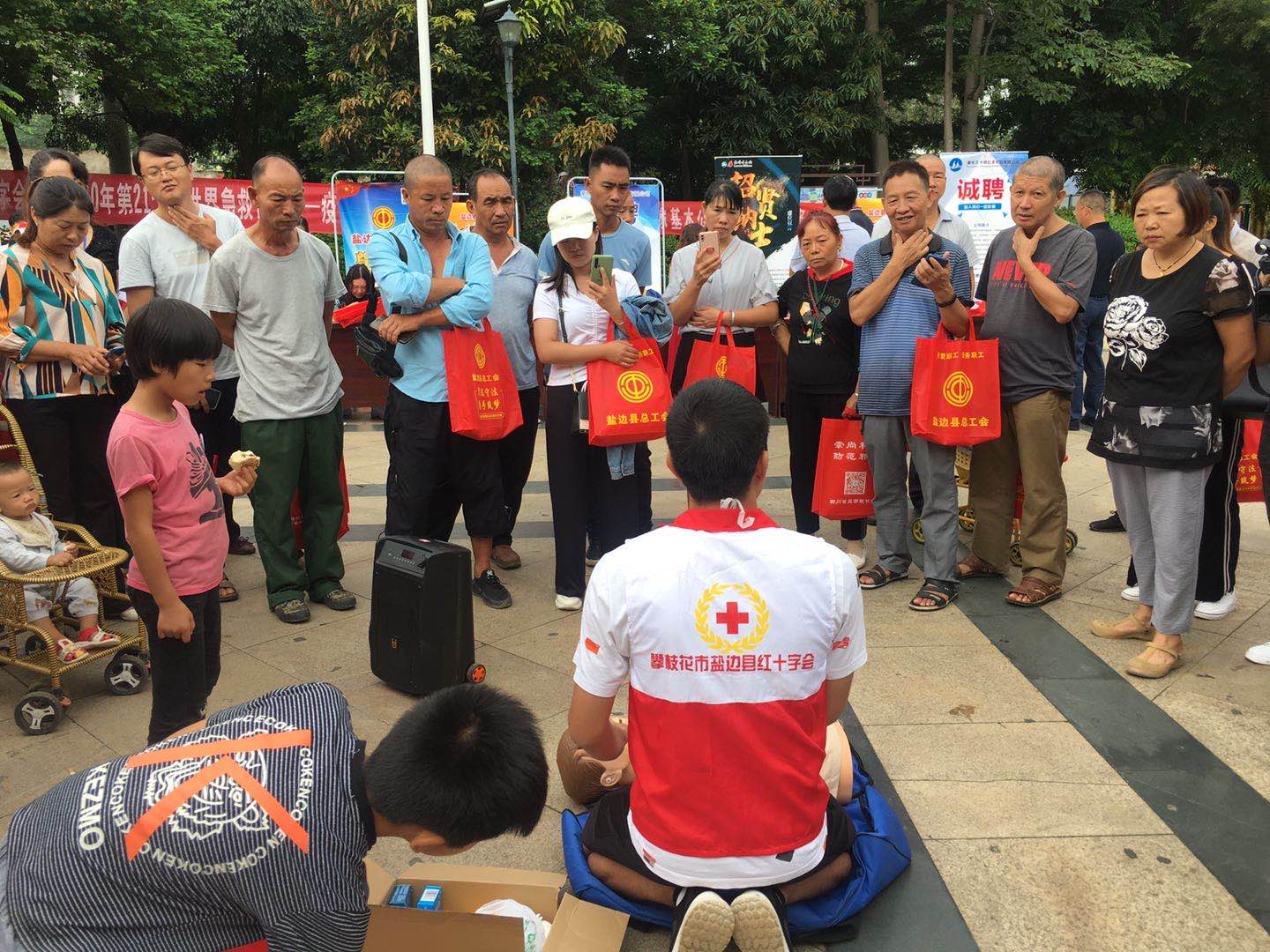 三是融入專題宣傳日活動。密切結合“世界急救日”宣傳活動,組織人員分別在鹽邊縣南部紅格鎮和北部漁門鎮開展“世界急救日”——“疫情下的急救”主題宣傳活動。紅十字會老師對群眾進行了急救知識宣講,并進行現場救護培訓演練,當場學習群眾達到1000余人,發放宣傳資料500余份。