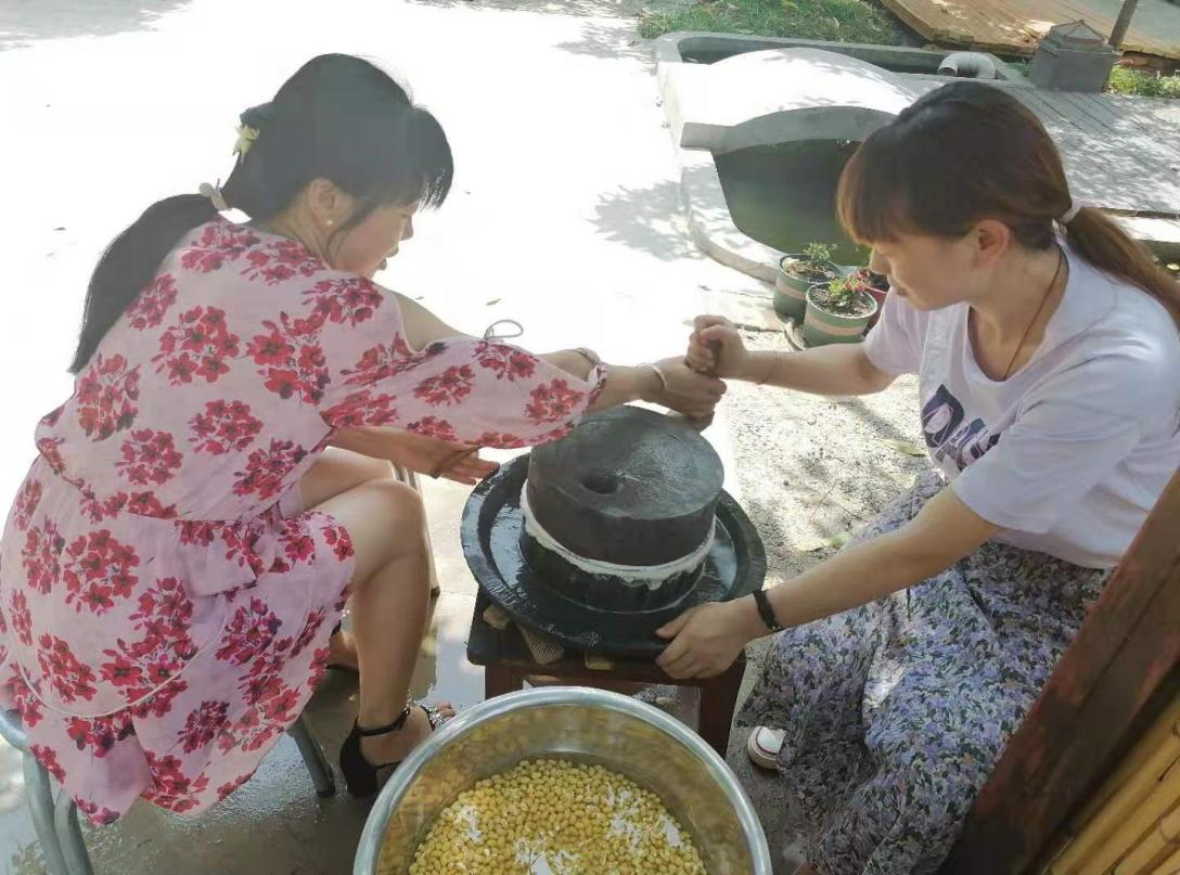 隨后,大家還體驗(yàn)了傳統(tǒng)美食石磨豆花的制作過程。一個(gè)石磨,一對(duì)支架,一根推磨棒,一粒粒金黃色的大豆,石縫中緩緩溢出的漿液到嘴里的美味佳肴,讓大家感受了美食的形成過程以及勞動(dòng)的快樂。