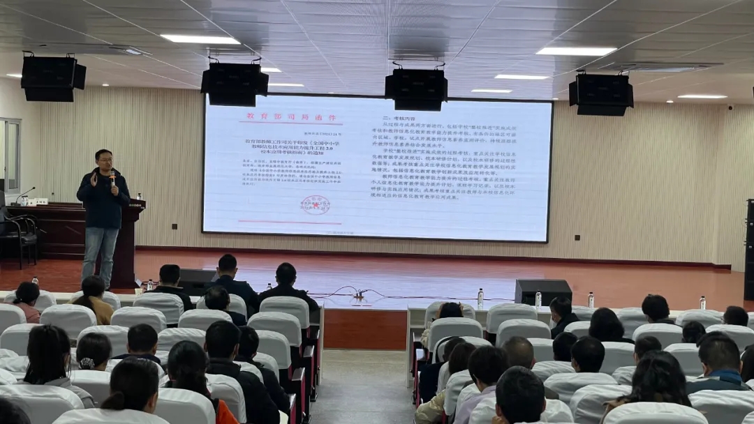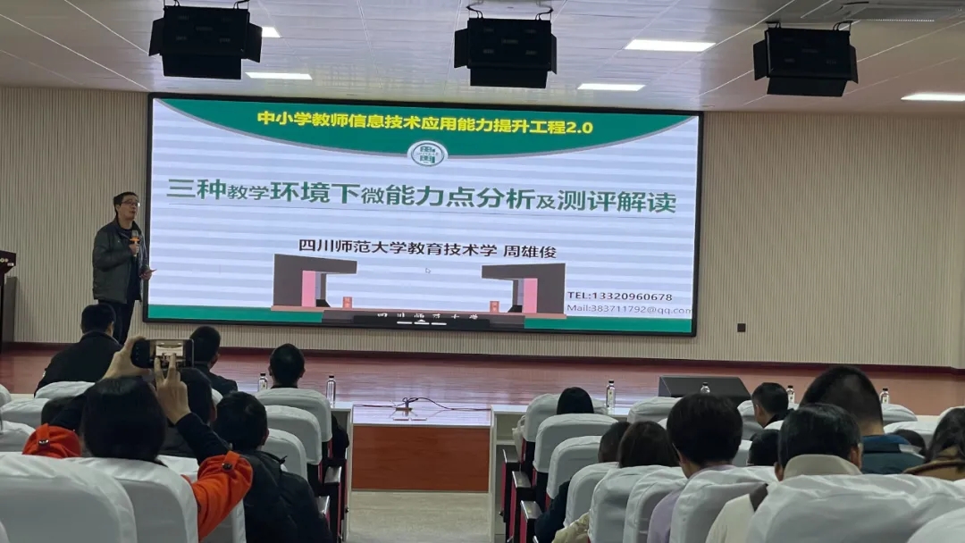此次培訓邀請了四川師范大學計算機科學學院副教授、四川省信息技術2.0提升工程省級專家組成員周雄俊,四川師范大學計算機科學學院副教授、提升工程2.0省級專家張養力進行授課。周熊俊就《三種教學環境下的微能力培訓分析和考核標準》進行了分析和考核介紹,通過對智慧教育課堂案例指導,明晰了課堂教學與微能力的結合發展點,為學校信息技術與學科教學創新發展指明了方向;張養力以《如何指導學校制定信息化發展規劃和“整校推進”實施方案》為題,詳解學校信息化發展規劃和整校推進方案制定,從基本思路、指南結構、學校實施指南,指導管理者們如何做好規劃和方案,為我縣各中小學校項目規劃和各階段的目標任務理清了思路,提供了充分的理論依據和實踐指導。