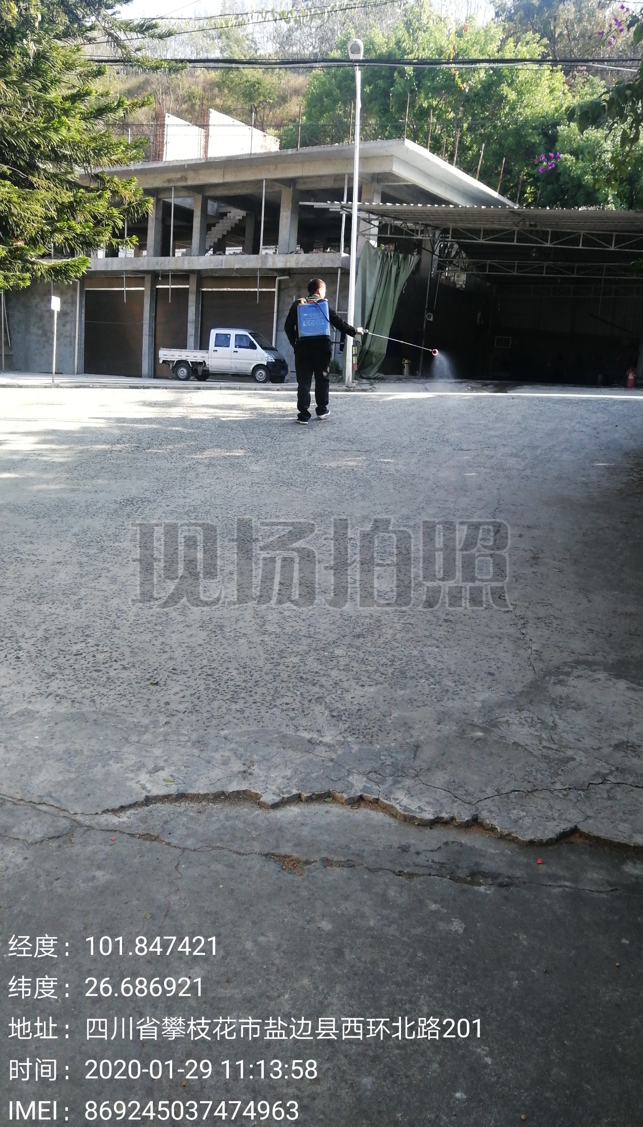 鹽邊縣自來水公司對工作區、廠區噴灑消毒液照片