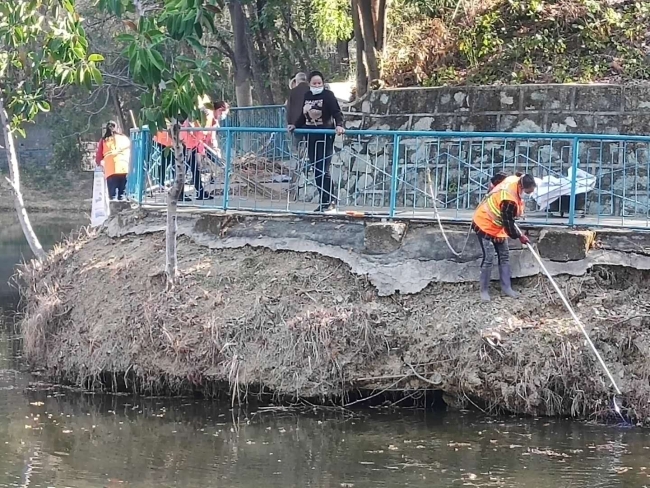 4.轄區公共綠地環境治理、管護情況。出動管護人員23人次,對公共綠地進行普掃一次,清除積存綠化垃圾50余處,消除喬木低矮枝、下垂枝6處,打撈月潭公園水面漂浮物50余斤,季節性病蟲害防治1200余平方。