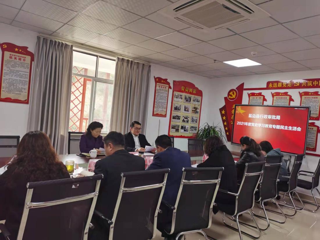 按照縣紀委、縣委組織部、縣委黨史學習教育辦公室要求,近日,縣行政審批局 黨組 召開 了 2021年 度 黨史學習教育專題民主生活會, 縣委指導組到會指導,縣行政審批局 黨組書記、局長何雪林主持, 黨員 班子成員參會 ,何珍燕同志及股室主要負責人列席會議 。